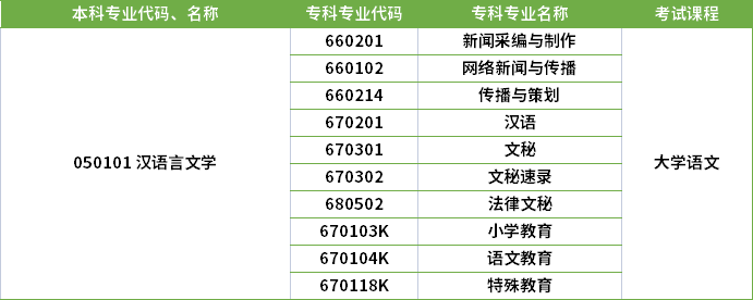 2025年河南专升本汉语言文学专业对应的专科专业有哪些?