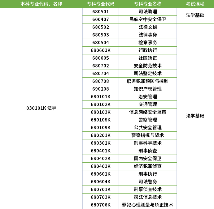 2025年河南专升本法学专业对口专科专业有哪些?