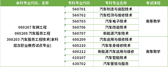 2025年河南专升本汽车服务工程专业的对口专业有哪些?