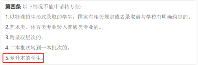 在多数院校公布的转专业管理办法中,都明确说明,不允许专升本的学生转专业。少数院校虽未明确指出,但基本也是相同的结果。
